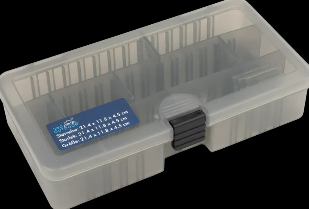 Grejæske fra 360 Outdoor til opbevaring af småt fiskegrej. Æsken har justerbare skillerum, så den kan opdeles i 4-12 rum efter behov. Velegnet til blink, kroge, spinnere, woblere og lodder.Fremstillet i robust polypropylen (PP), som tåler belastning. Med mørkegrå krop, sorte plastdele og enkel lukkemekanisme, der gør æsken nem at åbne og lukke.