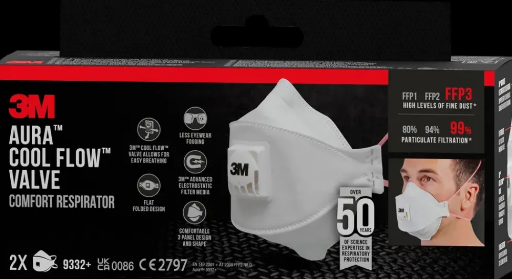 3M ™ Aura™CoolFlow™Comfort Åndedrætsværn FFP3 m/ven 2-pk| Værnemidler