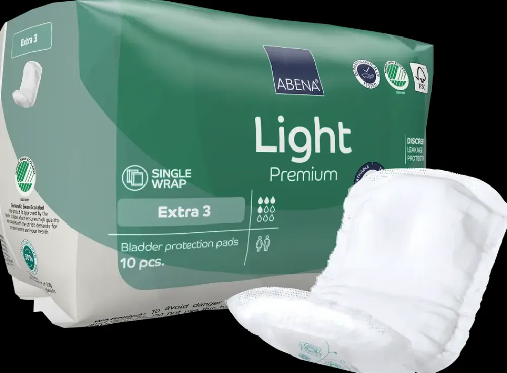 ABENA Light er vores førsteklasses serie af anatomisk formede bind med selvklæbende tape til let til moderat inkontinens. Den effektive kerne med Top-Dry teknologi giver hurtig absorption og tør overflade, selv efter gentagne vandladninger, og sikrer optimal hudbalance og øger komforten. De fuldt åndbare produkter er enten forsynede med liggende lækagebarrierer eller har en skumkant og/eller form, som sikrer mod lækager. Kombinationen af de 3 funktionaliteter – åndbarhed, beskyttelse og Top-Dry – hjælper med at beskytte huden og opretholde en naturlig hudbalance. Odor-systemet minimerer risikoen for ubehagelige lugtgener. De dermatologisk testede produkter bærer Svanemærket.Materiale: polyuretan skum, åndbar bagfolie, ECF fluff, nonwoven, PE, PP, resin, SAP.