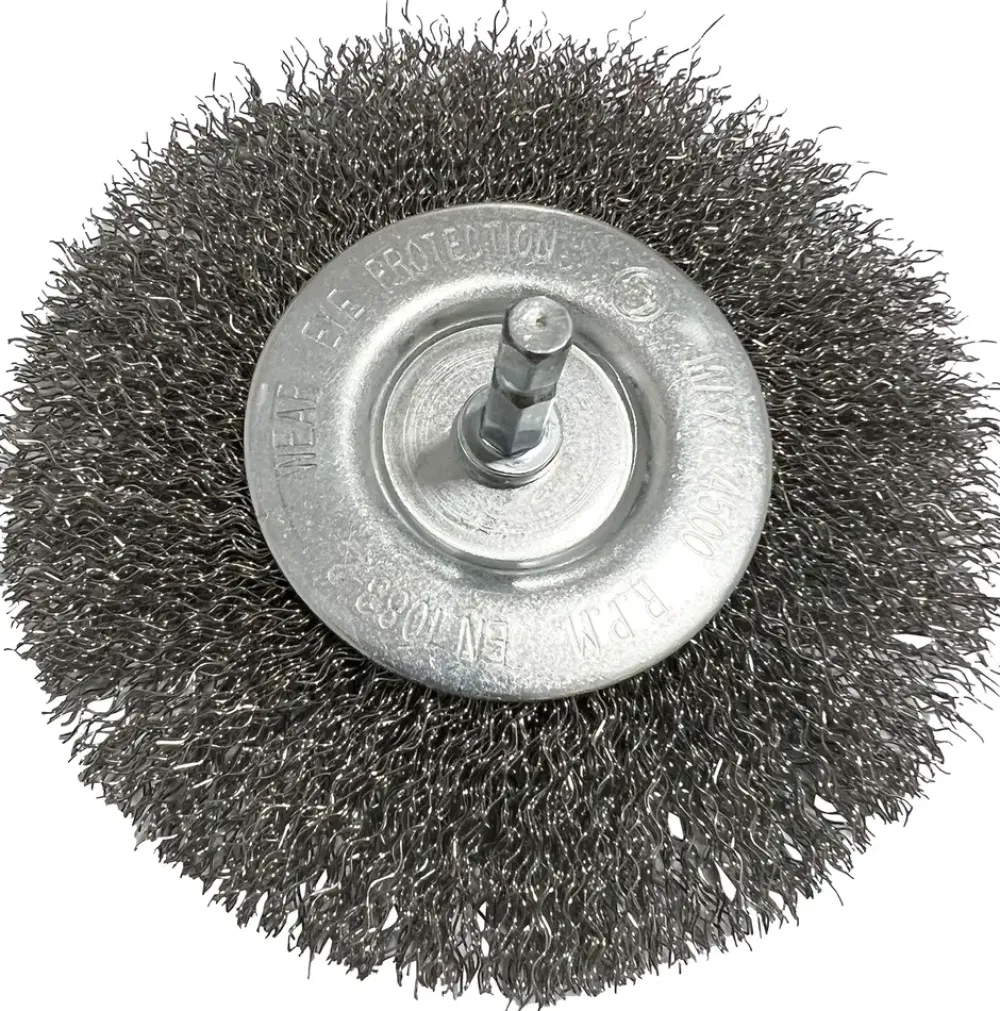 Metalbørstehjul til fliserenser. Børsten har en diameter på Ø110 mm. Hårdhed: hård. Passer til varenr.: 42167 – Adano Fliserenser 400W44496 – Mitsutomo Fliserenser 18V