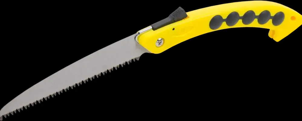 Foldesav som kan anvendes til beskæringsopgaver i haven. Det er en praktisk lille håndsav, som nemt kan foldes sammen, så du kan tage den med dig.