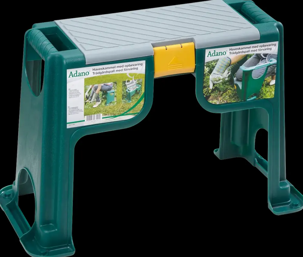 Gør havearbejdet mindre anstrengende med denne multifunktionelle haveskammel fra Adano. Kan bruges som både haveskammel og knæler. Desuden med praktisk rum til opbevaring af f.eks. havehandsker eller små haveredskaber.Maks. kapacitet som siddeplads: Ca. 120 kg.