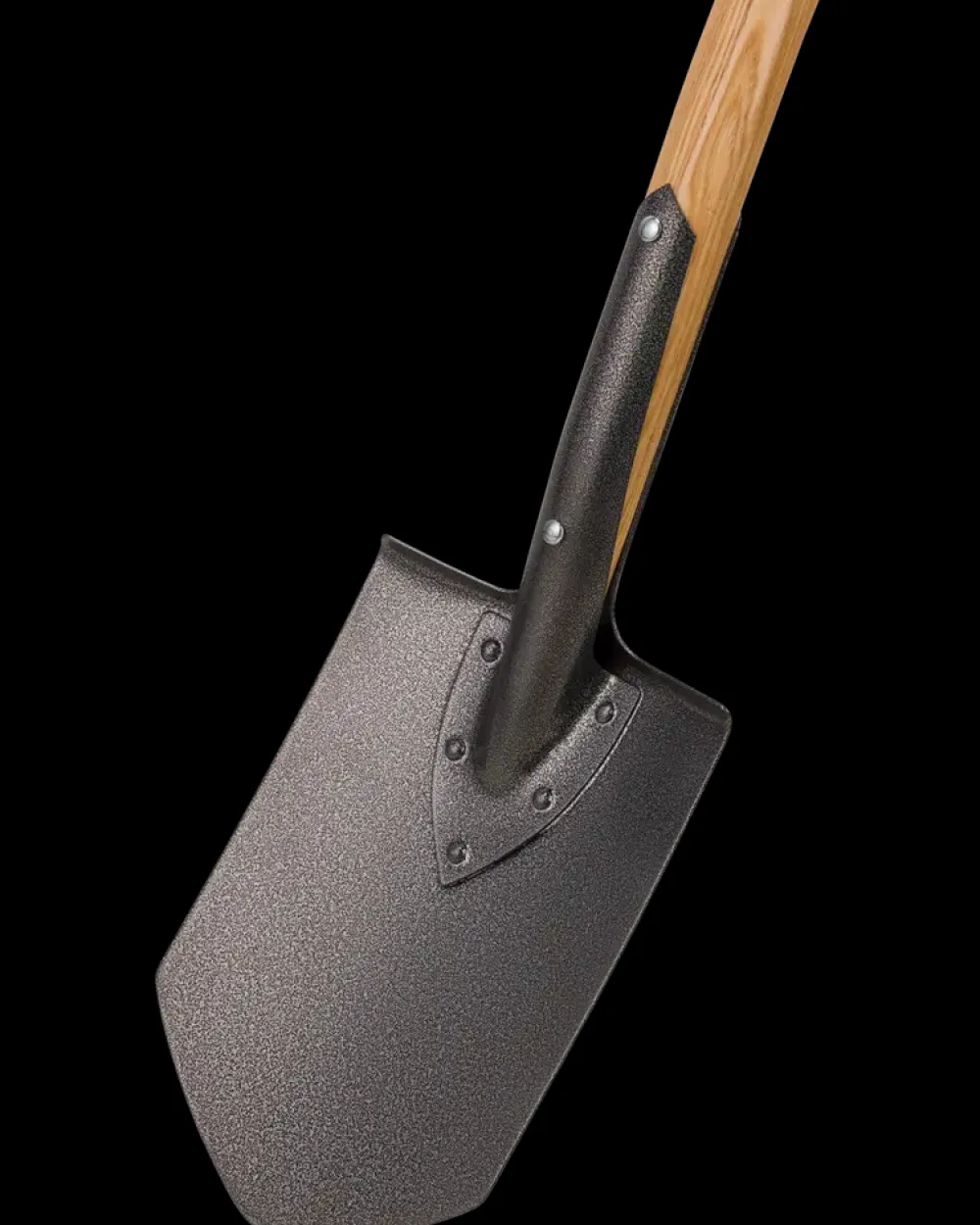 Spidsspade med hoved i pulverlakeret stål og y-greb.
