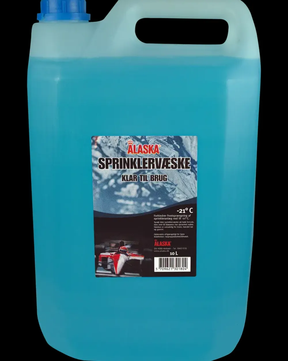 Alaska færdigblandet sprinklervæske, som forhindrer frostskader på sprinkleranlægget ned til – 21°C.Frostsikker ned til: -21°C.Danner iskrystaller ved ca. -13°C.