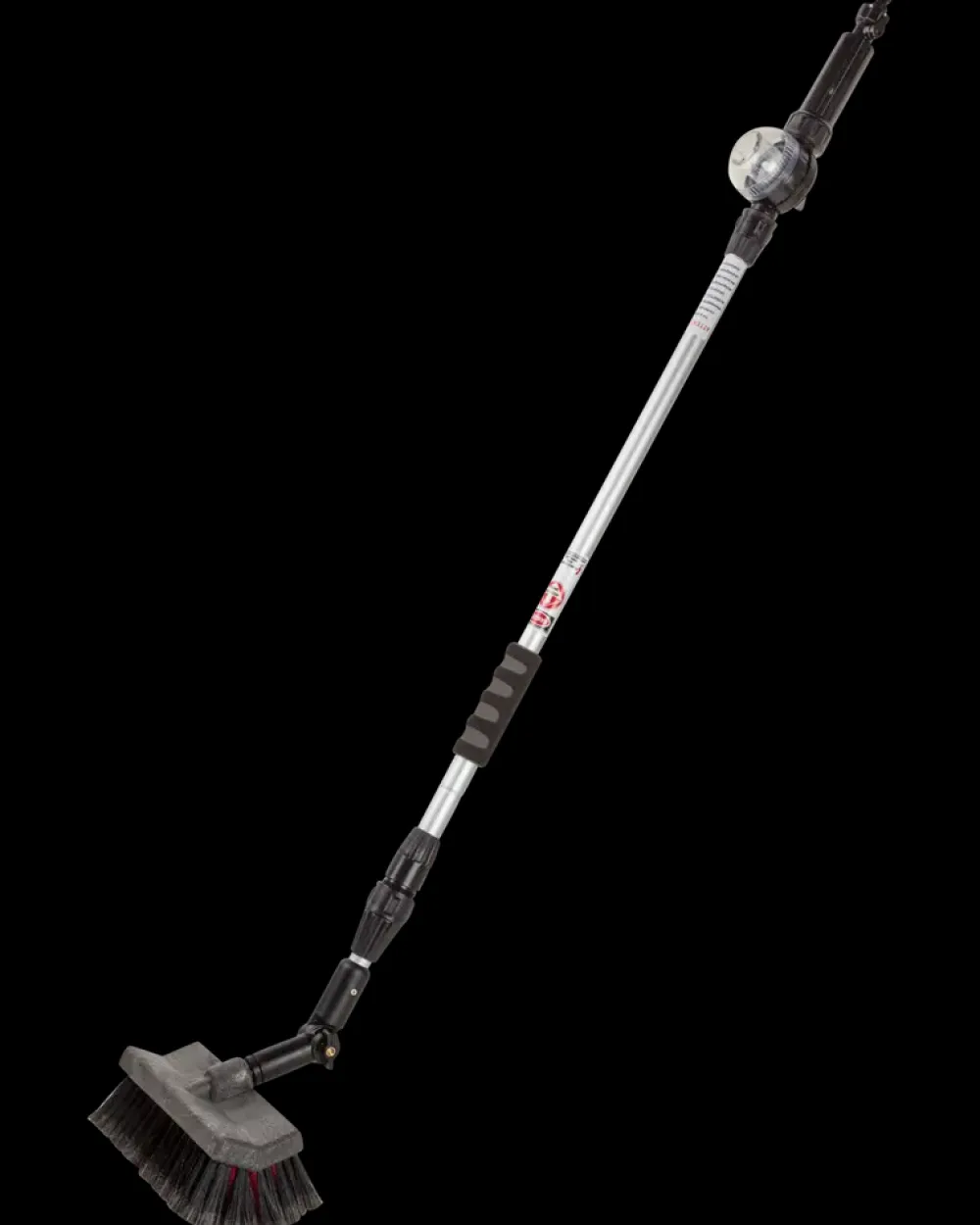 Teleskopstang med kraftig og solid vaskebørste, sæbedispenser, og med mulighed for tilslutning af vandslange.Børstehovedet kan justeres i 9 positioner, så selv vanskelige steder kan nås.
