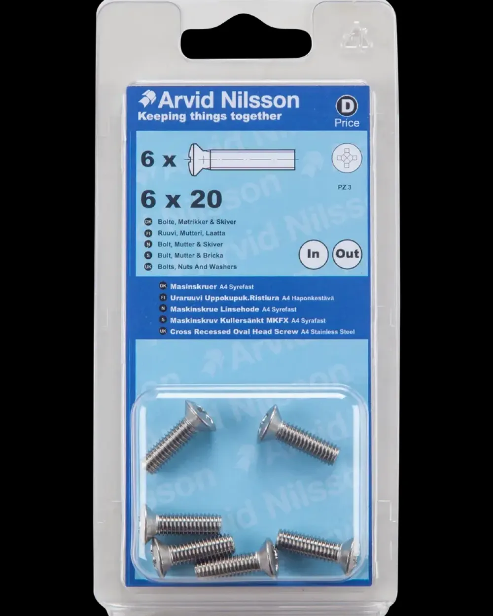Arvid Nilsson Maskinskrue A4 LH M6 x 20 mm 6-pak| Maskinskruer, Bolte Og Møtrikker