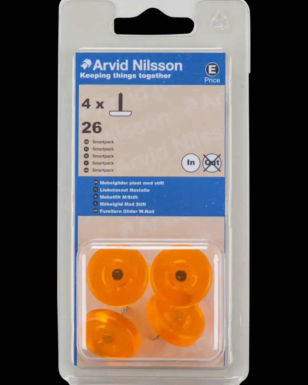 Arvid Nilsson Møbelglider + stift Ø26 mm 4-pak| Øvrige Monteringsbeslag