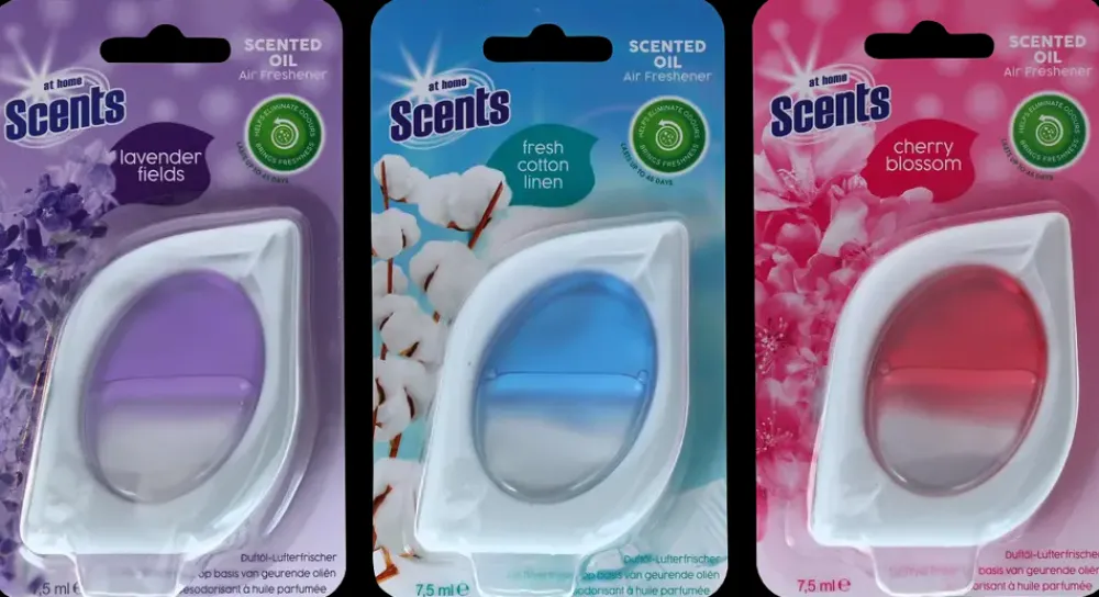At Home Scents luftfrisker 7,5 ml giver en behagelig duft og hjælper med at fjerne uønskede lugte i små rum som badeværelse, entré eller garderobe. Luftfriskeren afgiver gradvist en mild duft, der efterlader rummet friskt i længere tid. Den kræver hverken batterier eller strøm, hvilket gør den nem at placere overalt i hjemmet. Indeholder 7,5 ml duftolie. Leveres assorteret i tre dufte: Lavender Fields, Fresh Cotton Linen og Cherry Blossom – alle med deres egen karakteristiske og friske aroma.Variant kan ikke vælges ved køb i webshoppen.
