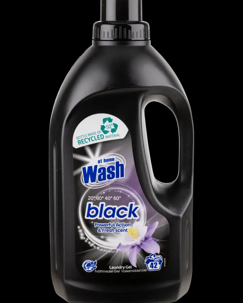 Flydende vaskemiddel fra At Home Wash® er et vaskemiddel, der kan bruges til alt dit sorte tøj.Til sort tøj.Op til 42 vaske.