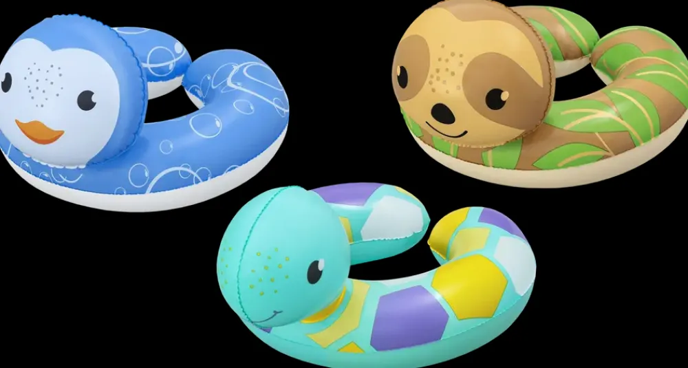 Denne åbne badering med farverige dyremotiver er den perfekte svømmemakker i poolen.Med den åbne ryg er baderingen nem at få på og af. Nem at puste op og få luften ud af igen, så den er nem at opbevare og transportere.Bemærk, at der ikke kan vælges motiver ved køb i webshoppen.
