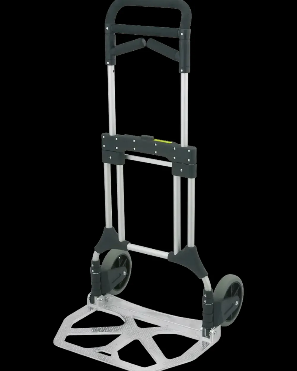 Sammenklappelig bagagesækkevogn i aluminium og plast. Nem at transportere og opbevare i sammenklappet tilstand, hvor den ikke fylder eller vejer meget.Mål, sammenfoldet: H. 102 x B. 59,5 x D. 10 cm.