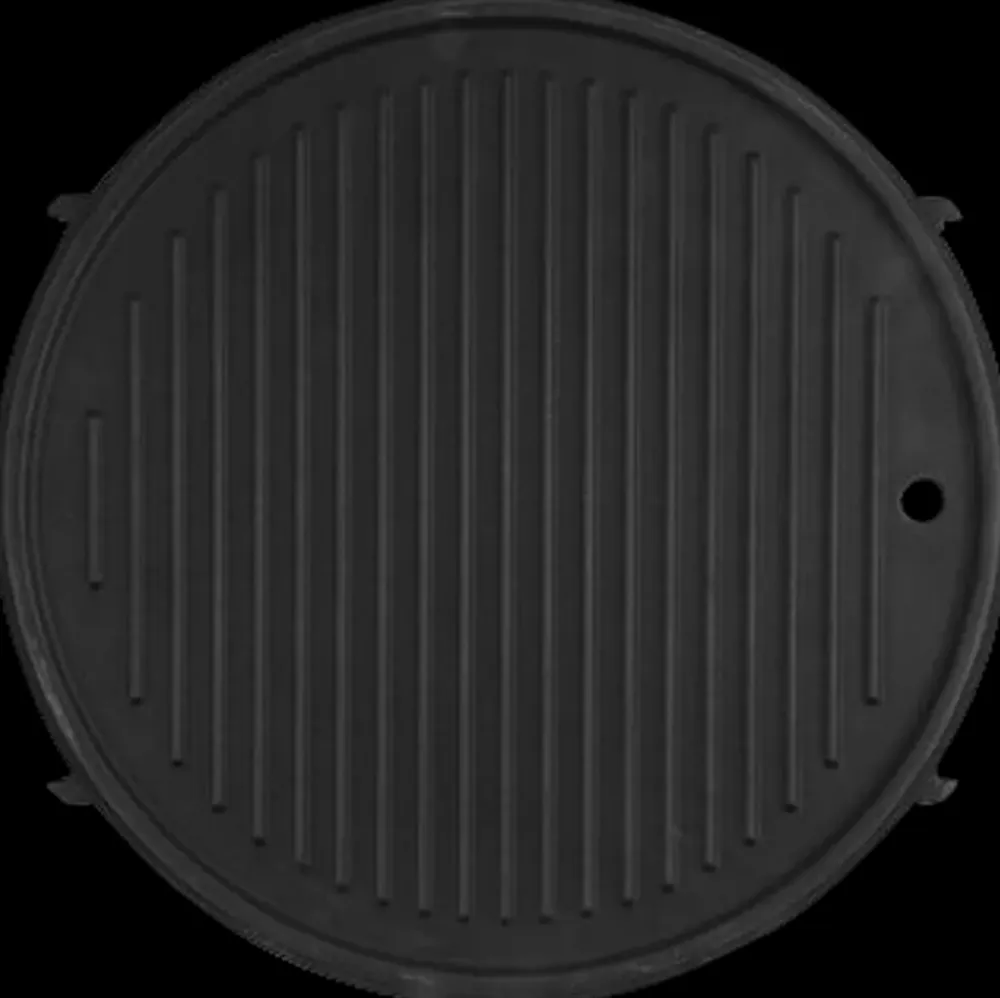 Grillpladen er vendbar med to forskellige sider, hvilket giver dig mulighed for at tilberede forskellige typer afstegninger. Den ene side kan være glat og ideel til stegning af fisk eller grøntsager, mens den anden side kan have riller og være perfekt til grillstegning af kød.Støbejernspanden er konstrueret med henblik på at sikre jævn varmefordeling, hvilket gør den ideel til madlavning på grillen. Du kan være sikker på, at dine retter bliver tilberedt jævnt og perfekt.Kan bruges direkte på grillen og er designet specielt til at blive brugt på grill med flex-funktion.Materiale: Emaljeret støbejern.