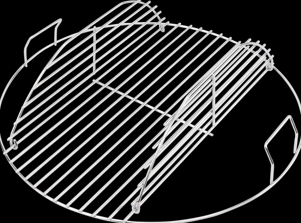 Grillrist i stål med håndtag på hver side. Siderne kan åbnes, hvilket gør det nemt at tilføje kul eller briketter under madlavningen.