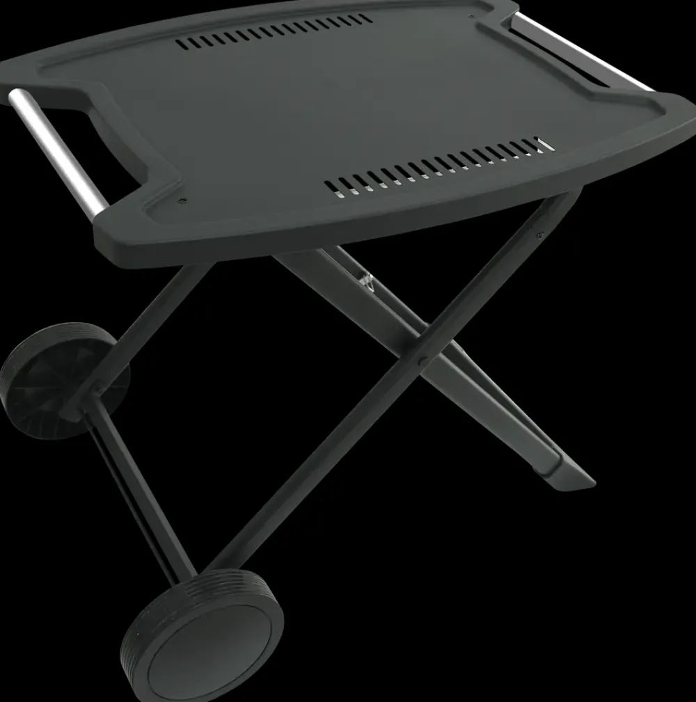 Foldbar grillvogn fra BAKERgrill med solide håndtag og hjul, som gør bordet let at flytte rundt med på terrassen.Grillvognen kan let foldes sammen, så den fylder mindre og dermed er nemmere at opbevare.Grillvognen kan bruges for sig selv og sammen med en grill, så der er ekstra plads til at opbevare og tilberede maden på.