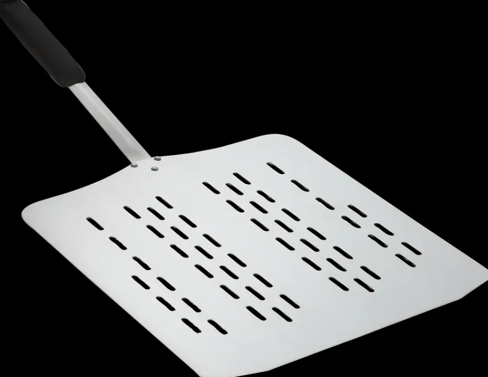 En pizzaspade er et næsten uundværligt redskab ved pizzabagning, der sikrer at pizzaen ikke knækker når pizzaen skal ind og ud af ovnen.Du kan med fordel give din pizzaspade en let oliebehandling inden brug.Pizzaspaden er forsynet med huller, som får størstedelen af pizzamelet til at drysse gennem spaden, inden pizzaen rammer ovnen.Melet brænder derfor ikke fast i ovnen, hvilket betyder mindre røg, mindre behov for rengøring, men som det vigtigste giver det den perfekte sprøde pizzabund.Mål på spade: 35 x 40 cmTotallængde: 71,5 cm