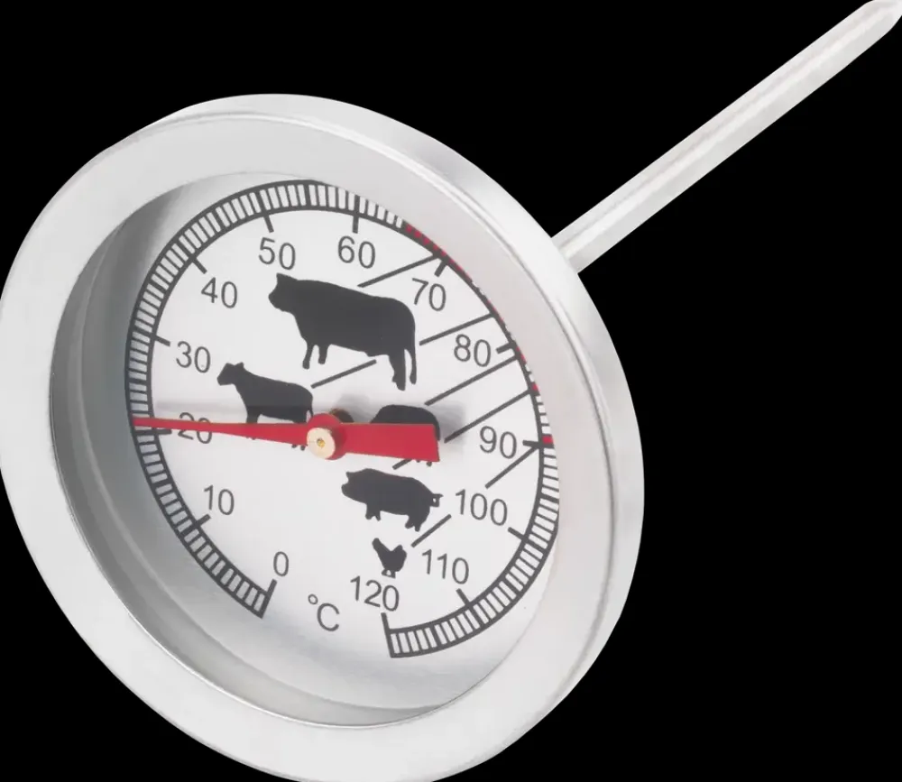 Praktisk stegetermometer til madlavning og bagning.Fremstillet i rustfrit stål og måler temperaturer fra 0 til 120 °C.Velegnet til brug i ovn og ved tilberedning af f.eks. kød og fjerkræ.