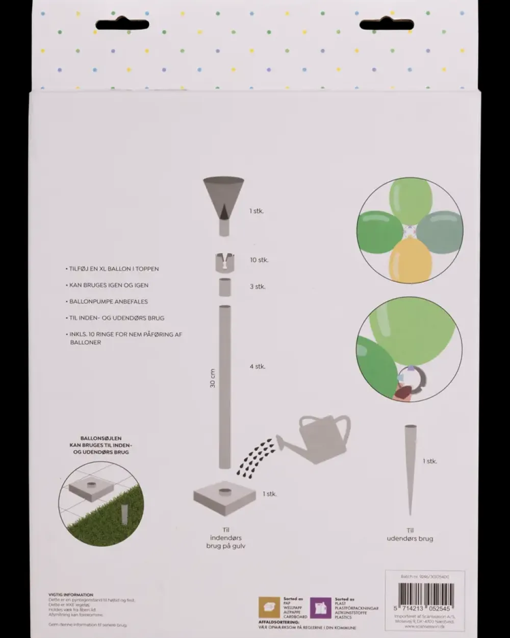 Skab en flot og iøjnefaldende dekoration med denne ballonsøjle, der giver en stabil og fleksibel base til dine kreative ballonopstillinger. Søjlen kan påfyldes med sand eller vand i bunden for ekstra stabilitet og er velegnet til festlige lejligheder. Med plads til ca. 32 balloner kan du nemt tilpasse søjlen efter behov. Det lette plastmateriale gør den nem at samle og flytte.Balloner købes separat.