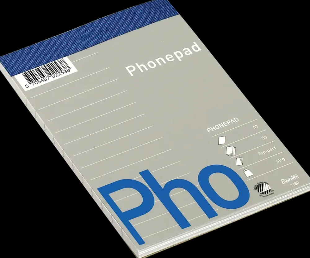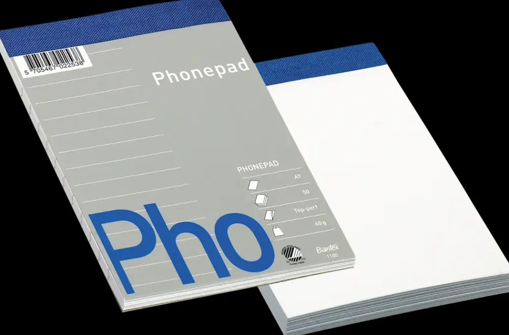 Linjeret blok fra Bantex i A7 størrelse.Telefonblokken er hæftet i toppen og forsynet med blå lærredstape.Siderne er mikroperforerede, hvilket sikrer en næsten renskåret kant.