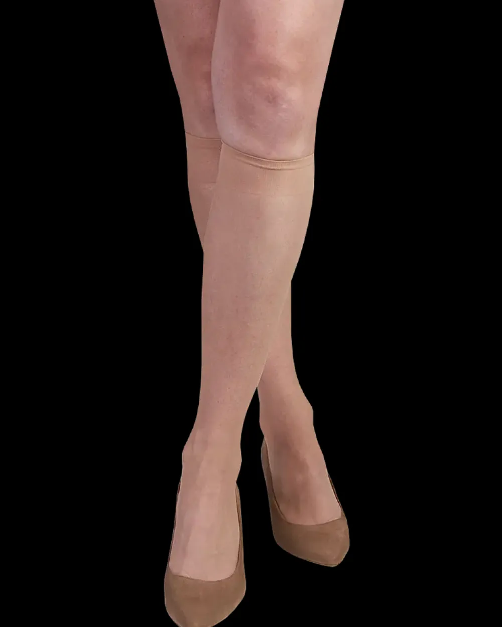 Knæstrømper 20 DEN i basis nylon kvalitet med forstærket tå.Det anbefales at bruge vaskepose ved maskinvask.
