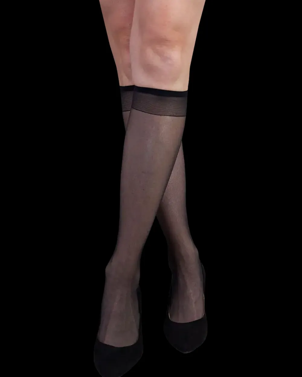 Knæstrømper 20 DEN i basis nylon kvalitet med forstærket tå.Det anbefales at bruge vaskepose ved maskinvask.