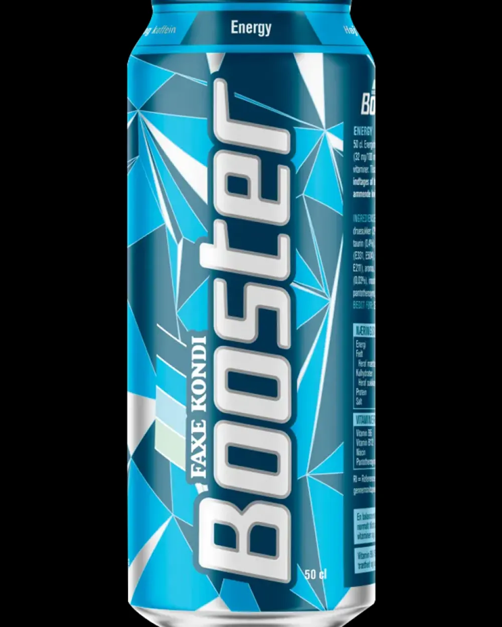 Energidrik med smagen af klassisk energidrik. Mere frisk og mindre sød end den originale Faxe Kondi Booster.IngredienserVand, sukker, druesukker (4%), syre (E330), kuldioxid, salt, koffein (0,032%) konserveringsmidler (E202, E211), surhedsregulerende midler (E339, E500, E331, E501), aroma (bl.a. quinin), farvestof (E133), vitaminer (pantothensyre, Vitamin B6, biotin, Vitamin B12)