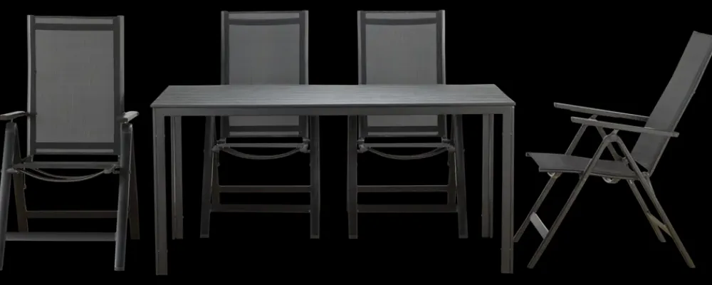 Enkelt havebord i pulverlakeret stålstel og med sorte vellignende Non-Wood lameller.