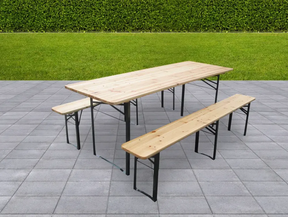 Dette bord- og bænkesæt i massivt grantræ er det perfekte valg til udendørsområdet. Det solide grantræ giver både holdbarhed og naturlig skønhed til sættet. Desuden er det let at samle og montere.Bord- og bænkesættet har et elegant design, der passer godt til enhver have eller terrasse. Det er ideelt til at nyde udendørs måltider, hygge sig med venner og familie eller blot slappe af.Bordet måler H. 75 x B. 50 x L. 217 cm.Bænkene måler H. 45 x B. 25 x L. 217 cm.