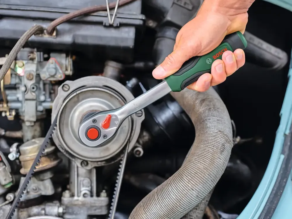 Kraftigt 1/2″ skraldesæt designet til bilreparationer, monteringsopgaver og gør-det-selv-arbejde. Skralden har et moment op til 768 Nm, hvilket er 50 % over den aktuelle ISO-standard.Det 72-tandede pulvermetallurgi gear giver en præcis arbejdsvinkel på 5°, hvilket forbedrer kraftoverførslen og gør det nemt at arbejde på trange steder. En låseknap sikrer hurtig fastlåsning og frigørelse af toppen, mens den intuitive retningsomskifter gør det let at skifte mellem venstre- og højre omløb.Det ergonomiske to-komponent greb med softgrip sikrer en komfortabel og sikker håndtering under brug.1x ½” skralde19 x ½” topnøgler (8, 9, 10, 11, 12, 13, 14, 15, 16, 17, 18, 19, 20, 21, 22, 24, 27, 30, 32 mm)2 x ½” tændstiknøgler (16 mm, 21 mm)2 x ½” forlængerstænger (75 mm, 250 mm)1 x ½” universalkoblingsadapter1 x bæretaske10 års garanti fra BoschBosch tilbyder en imponerende 10 års garanti på dette produkt. For at registrere din udvidede garanti, kan du finde vejledning under “Vejledninger og datablade”.