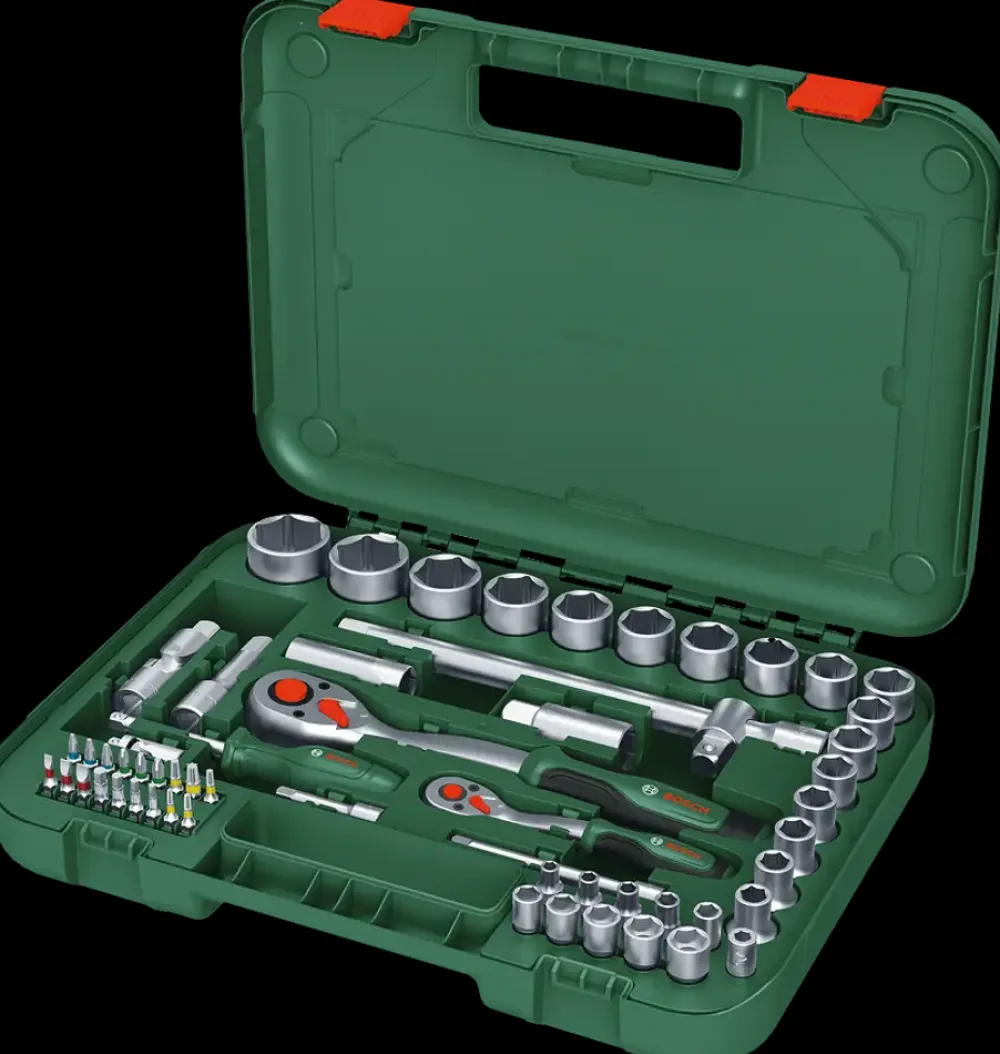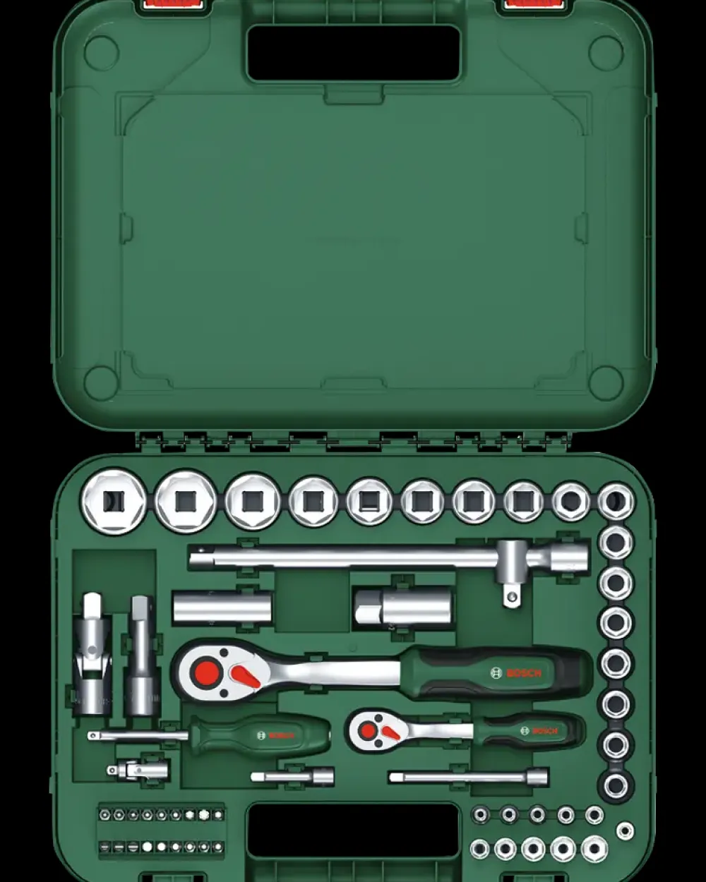 Bosch Skraldesæt 1/4″ og 1/2″ 57 dele| Topnøglesæt Og Skralder