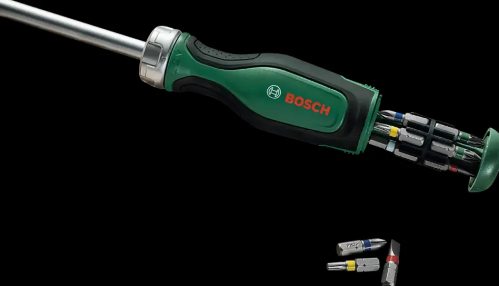Bosch-skruetrækker med skralde og integreret bitmagasin er en alsidig løsning til både professionelle og gør-det-selv-entusiaster. Den har en præcis skraldefunktion med et pulvermetallurgisk tandhjul med 36 tænder, der giver et drejningsmoment op til 50 Nm. En intuitiv metalring gør det nemt at skifte retning, mens den midterste position muliggør manuel brug uden skralde.Den 80 mm lange klinge og den magnetiske bitholder sikrer enkel og præcis skruning, selv i krævende opgaver. Det ergonomiske håndtag med softgrip-belægning giver øget komfort og kontrol. Håndtaget indeholder desuden et pop-op-magasin med 12 farvekodede bits (PH, PZ, SL, TX, HEX) i hærdet S2-stål, hvilket sikrer hurtig adgang til de mest anvendte bits.Denne kompakte og robuste skruetrækker er ideel til daglig brug og sikrer effektiv skruning med maksimal præcision.Medfølgende bits (25 mm):PH1/2, PZ1/2/3, SL4/5/6, TX20/25, HEX4/5.10 års garanti fra BoschBosch tilbyder en imponerende 10 års garanti på dette produkt. For at registrere din udvidede garanti, kan du finde vejledning under “Vejledninger og datablade”.