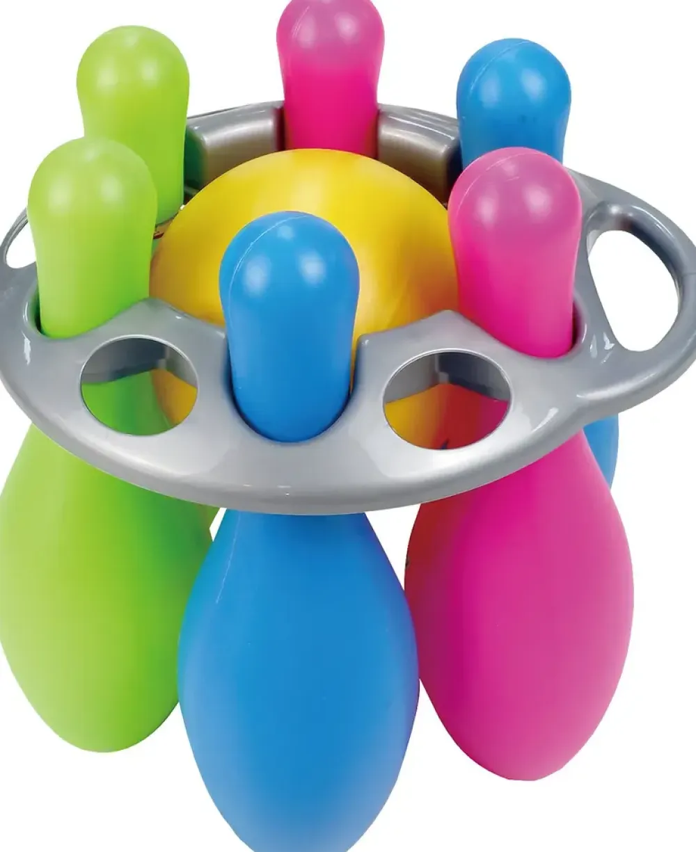 Sjovt bowlingsæt til mange timers sjov leg både ude og inde.Sættet består af: 1 stk. bowlingkugle og 6 stk. bowlingkegler, samt praktisk holder til transport.Anbefalet alder: fra 3 år.Ikke egnet for børn under 3 år.Fare for kvælning – produktet indeholder små dele, og er ikke egnet til børn under tre år.