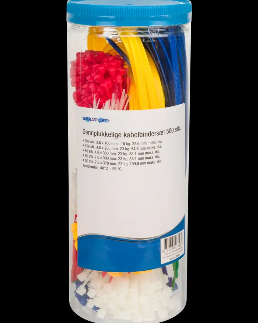 BRANFORD Kabelbindersæt genoplukkelige 500 stk.| Kabelbindere