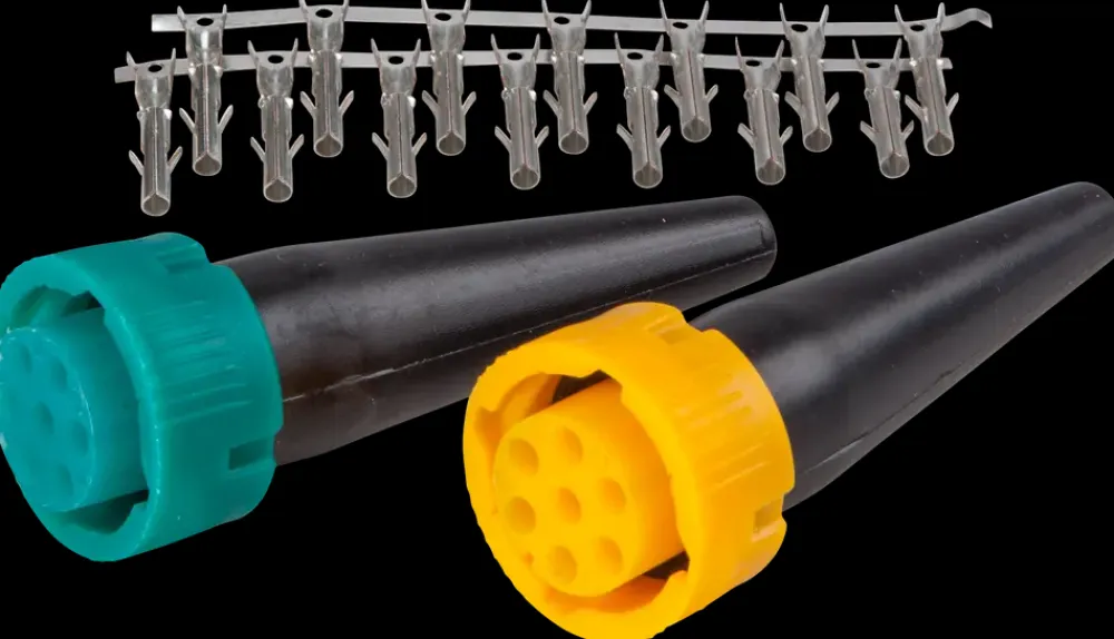 Stiksæt fra Branford® til trailerlygte. Komplet sæt med ét grønt og ét gult stik. Inkl. 14 stk. kontaktpin.