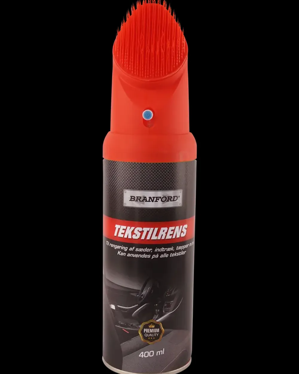Effektiv tekstilrens med børste fra Branford. Til rengøring af sæder, indtræk, tæpper i bilen mv.Kan anvendes på alle tekstiler.
