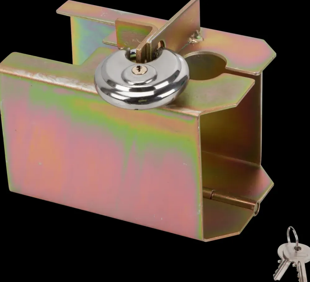 Trailerlås inklusiv hængelås.Boksmodel.Passer til de fleste træk.