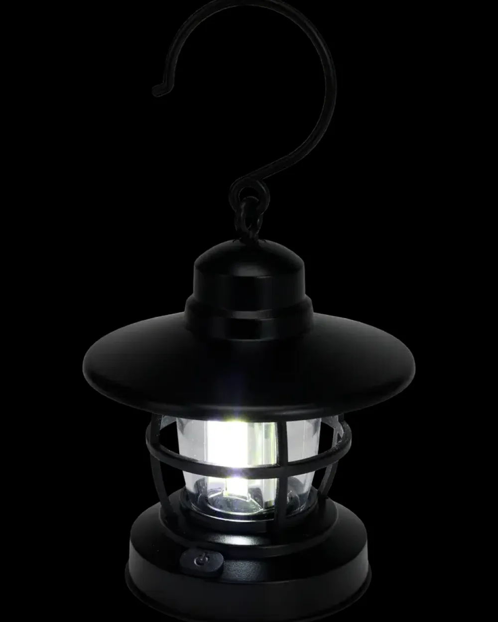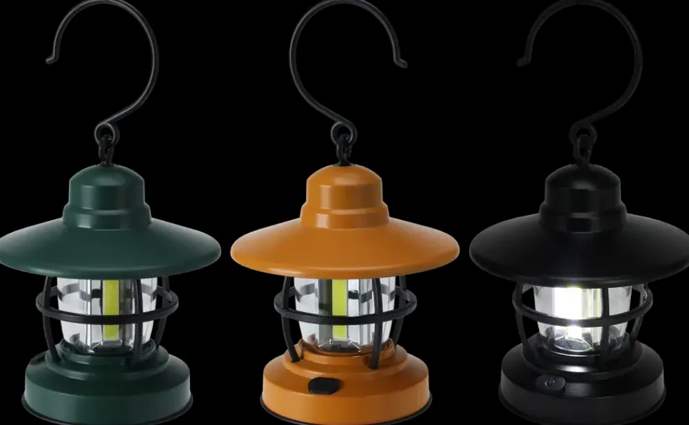 Campinglampe med krog, der både kan hænge og stå.Lampen er med til at skabe en hyggelig belysning i mørket.Bruger 3 x AAA-batterier (ekskl.).Bemærk at der ikke kan vælges farve ved køb i webshoppen.