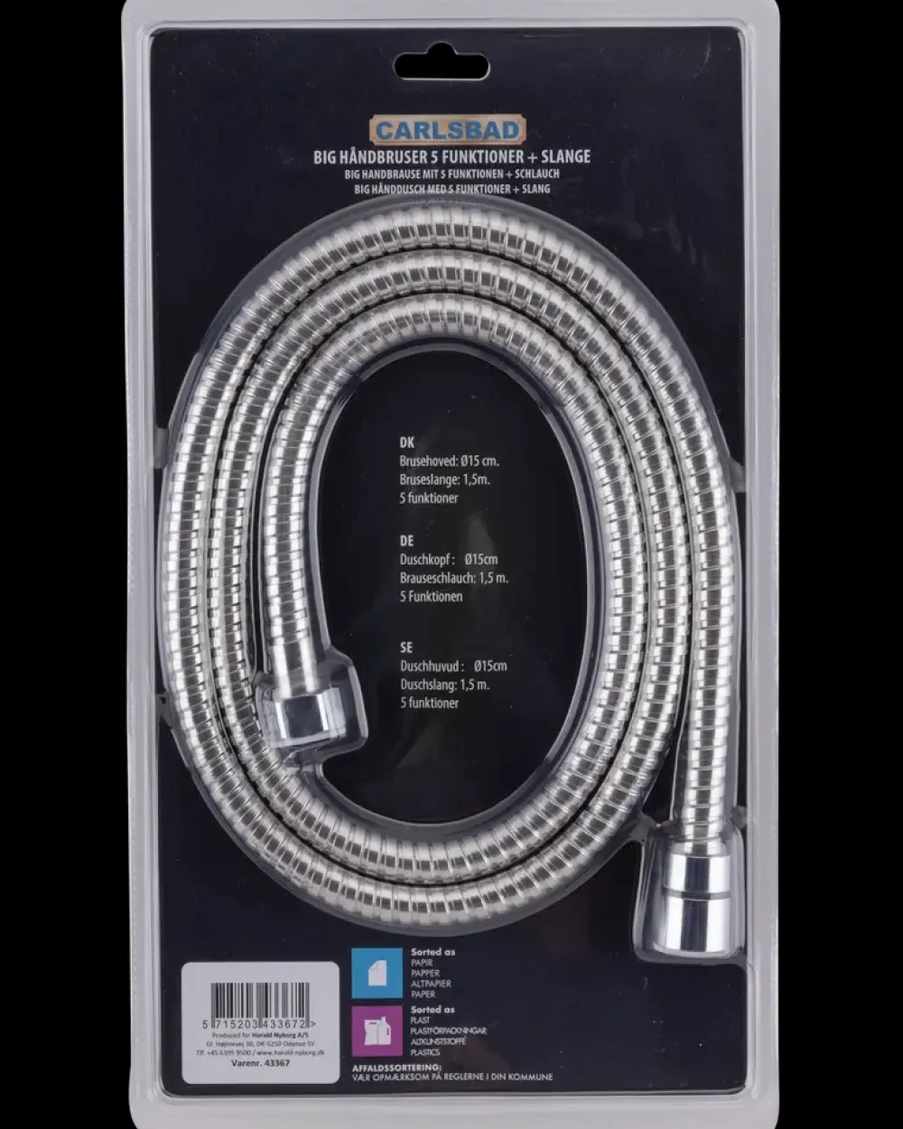 Carlsbad Big Håndbruser med slange – 5 funktioner| Brusesæt Og -Slanger
