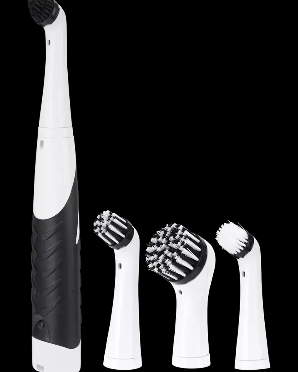 Batteridrevet rengøringsbørste til anvendelse overalt i hjemmet, effektiv på selv svært tilgængelige steder. Rengøringsbørsten anvendes i køkkenet, badeværelset og andre steder hvor ekstra rengøring er påkrævet. 4 børstehoveder medfølger: Ø30 mm – anvendes til større overflader. Ø15 mm – anvendes til mindre overflader. Ø15 mm – anvendes til sarte overflader. Ø15 mm – anvendes i hjørner, fuger og kroge. Bruger 4 x AA batterier (ekskl.).