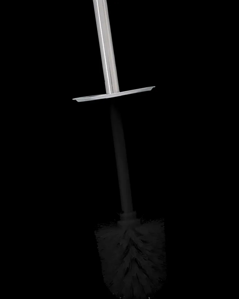Toiletbørste i holder, med blank overflade.
