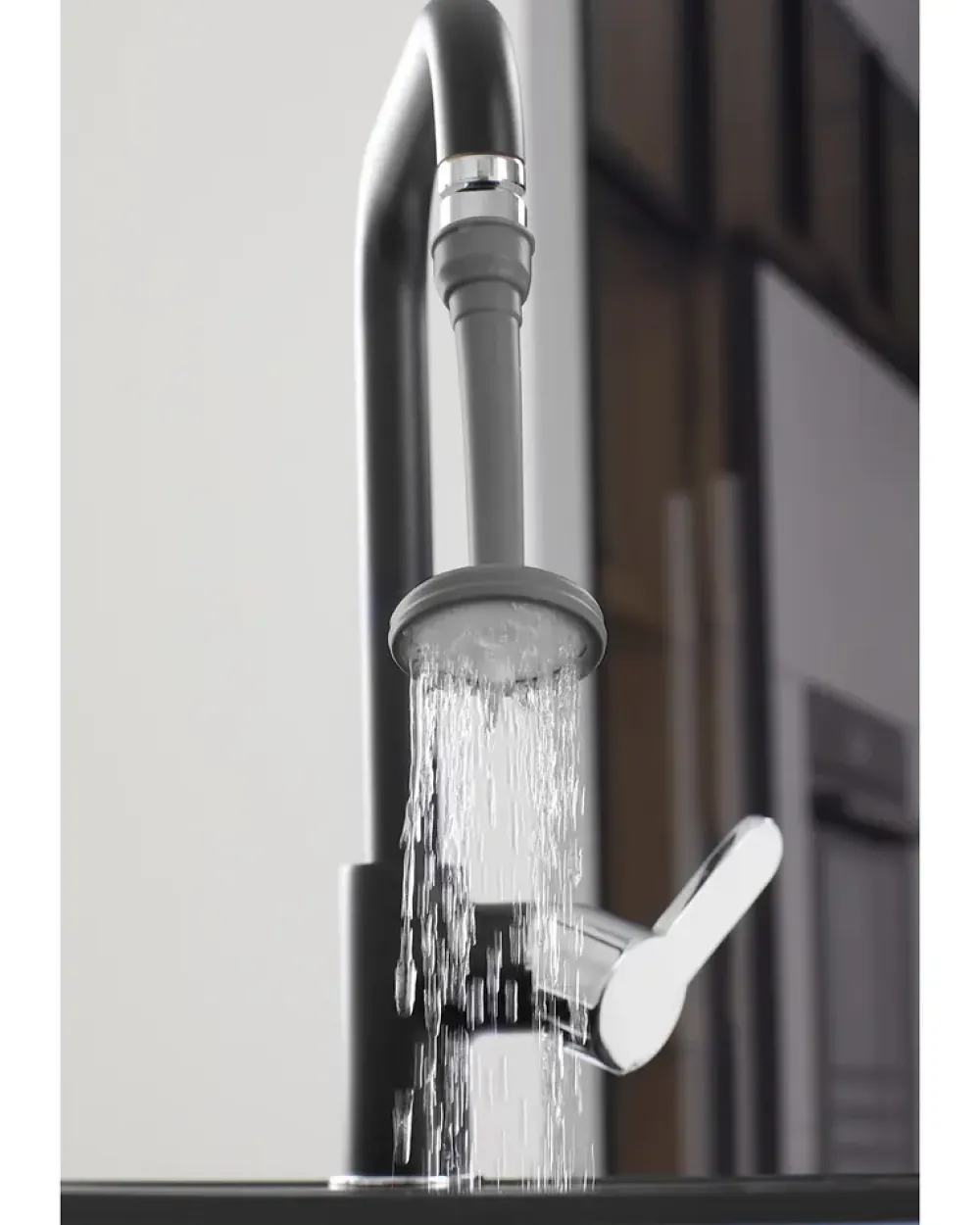 Praktisk brusedyse til armaturer med to funktioner, der kan anvendes i både køkken og bad. Funktionen kan let skiftes efter behov, hvilket gør den alsidig og anvendelig til forskellige opgaver. Passer til de fleste køkkenarmaturer. Længde 7,5 cm