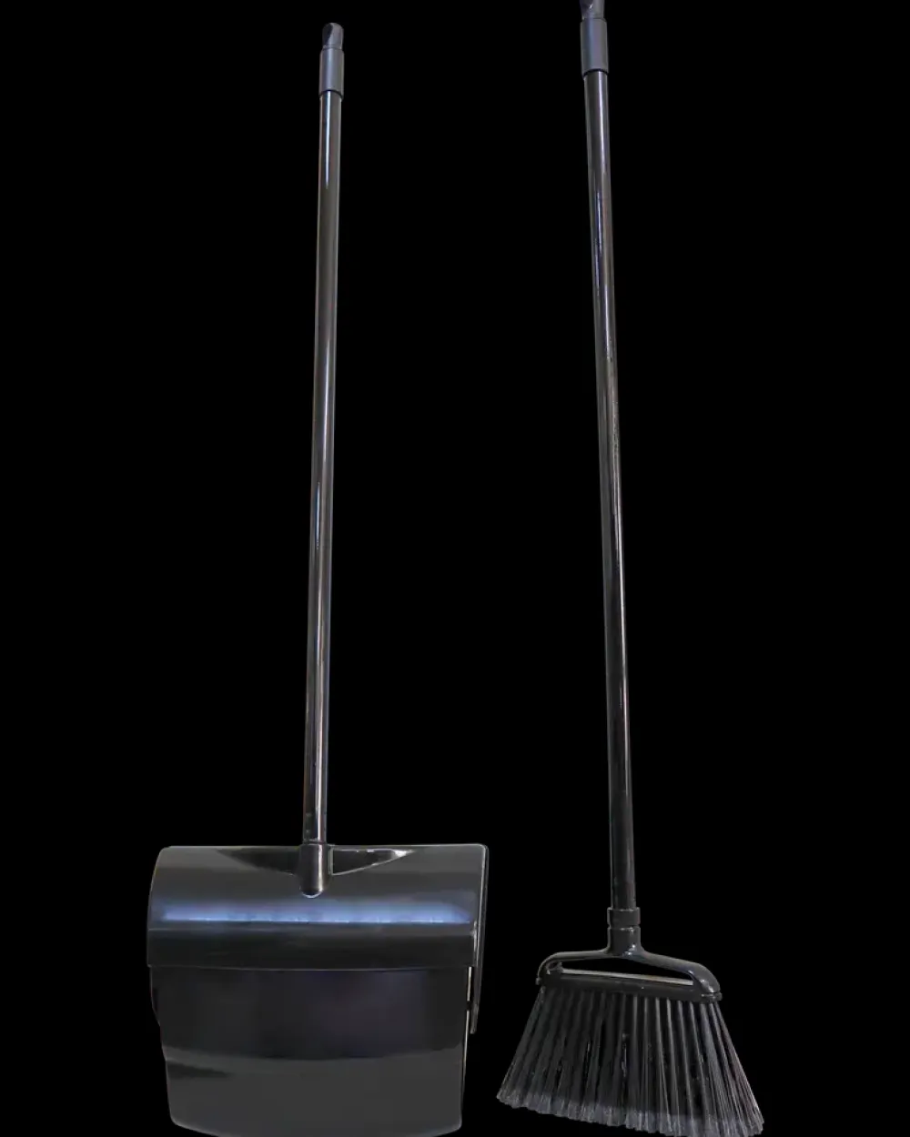Fejebakkesæt i høj kvalitet.Fejebakken har et låg så det er nemmere, at holde på det opsamlede skidt.Fejebakken har en gummikant så den lukker tæt til gulvet, hvilket gør opsamlingen nemmere.Sættet leveres med kost med børstehår i god kvalitet, som gør fejningen til en leg.Skaftet har en længde på 85 cm.