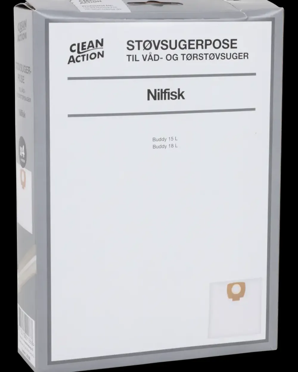 Støvsugerposer fra Clean Action, der passer til Nilfisk Buddy modeller. Poserne er velegnede til både våd- og tørstøvsugning og sikrer effektiv opsamling af snavs og støv. Fremstillet i slidstærkt materiale, der giver god filtrering og beskytter motoren mod støvpartikler.Sættet indeholder 4 støvsugerposer samt 1 vådfilter, så du nemt kan skifte mellem tør- og vådsugning efter behov.Specifikationer:Passer til: Nilfisk Buddy 15 og 18Antal: 4 stk. støvsugerposer + 1 vådfilterAnvendelse: Til våd- og tørstøvsugning