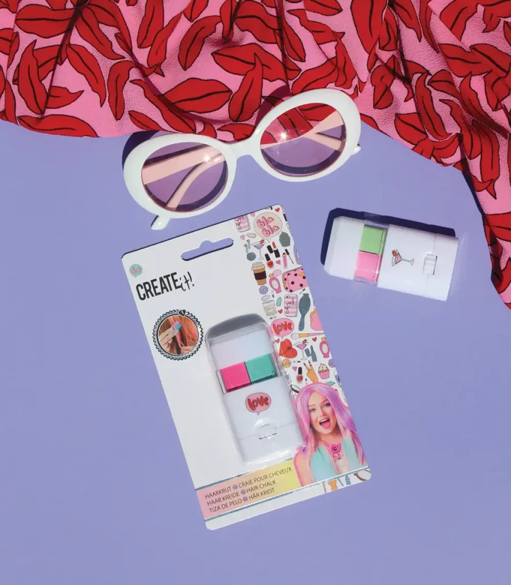 Hårkridt med to farver i én enhed – en hurtig og nem løsning til midlertidige farveeffekter i håret. Det kompakte design gør hårkridtet let at håndtere og velegnet til at tilføje farve i enkelte sektioner eller striber – uden brug af vand eller varme.Hver enhed indeholder to kontrast- eller komplementærfarver og leveres i to assorterede varianter. Farven påføres direkte på håret ved at føre kridtet hen over hårlokkerne. Resultatet ses med det samme og kan vaskes ud ved næste hårvask.Produktet er en del af Create It! kosmetiksortiment og udviklet i overensstemmelse med EU’s kosmetikregler. Det er uden parabener, glutenfri, 99 % vegansk og ikke testet på dyr. Emballagen er fremstillet af 100 % genanvendt PET.Variant kan ikke vælges ved køb i webshoppen.