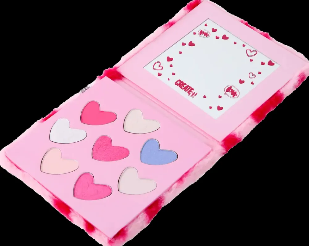 Øjenskyggepalette med 8 hjerteformede farver i et dekorativt og blødt plyscover med hjertemønster. Paletten kombinerer et iøjnefaldende design med funktionelle egenskaber som indbygget spejl, der gør det let at lægge makeup – både hjemme og på farten.Farveudvalget består af lyse, neutrale og glitrende nuancer, der egner sig til både hverdagsbrug og mere kreative looks. Øjenskyggerne er nemme at påføre og blende, og det kompakte format gør paletten velegnet til opbevaring i tasken.Create It! kosmetik er udviklet i overensstemmelse med EU’s kosmetiklovgivning, og produkterne er uden parabener, glutenfri og 99 % veganske. Ingen af produkterne er testet på dyr.