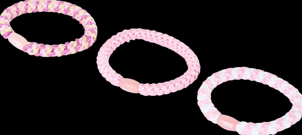 Flettede hårelastikker med perle, designet til at skåne håret bedst muligt. Sættet indeholder 3 elastikker, som også kan bruges som armbånd, og du kan mixe og matche farverne.
