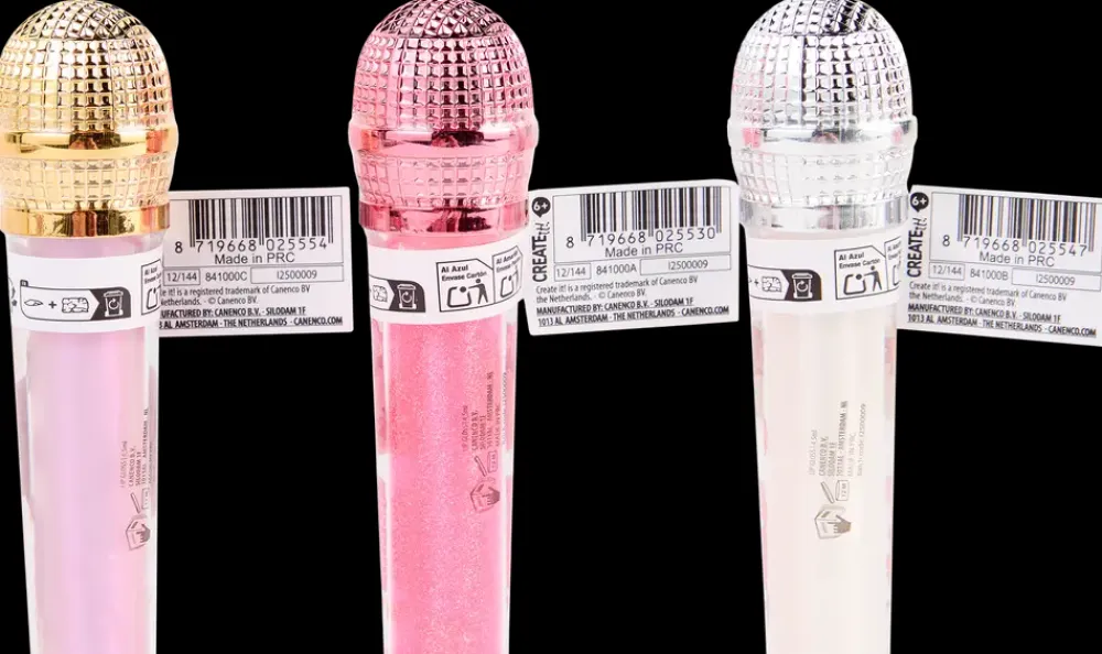 Lipgloss i et etui formet som en mikrofon. Hver variant har sin egen farve samt duft og smag. Produktet åbnes ved at skrue låget af, hvor applikatoren er placeret, og konsistensen gør det let at fordele glossen på læberne i hverdagen.Findes i tre farver og opfylder gældende kosmetiske krav. Uden parabener og glutenfri. Plastbeholder med skruelåg og integreret applikator.Farve kan ikke vælges ved køb i webshoppen.