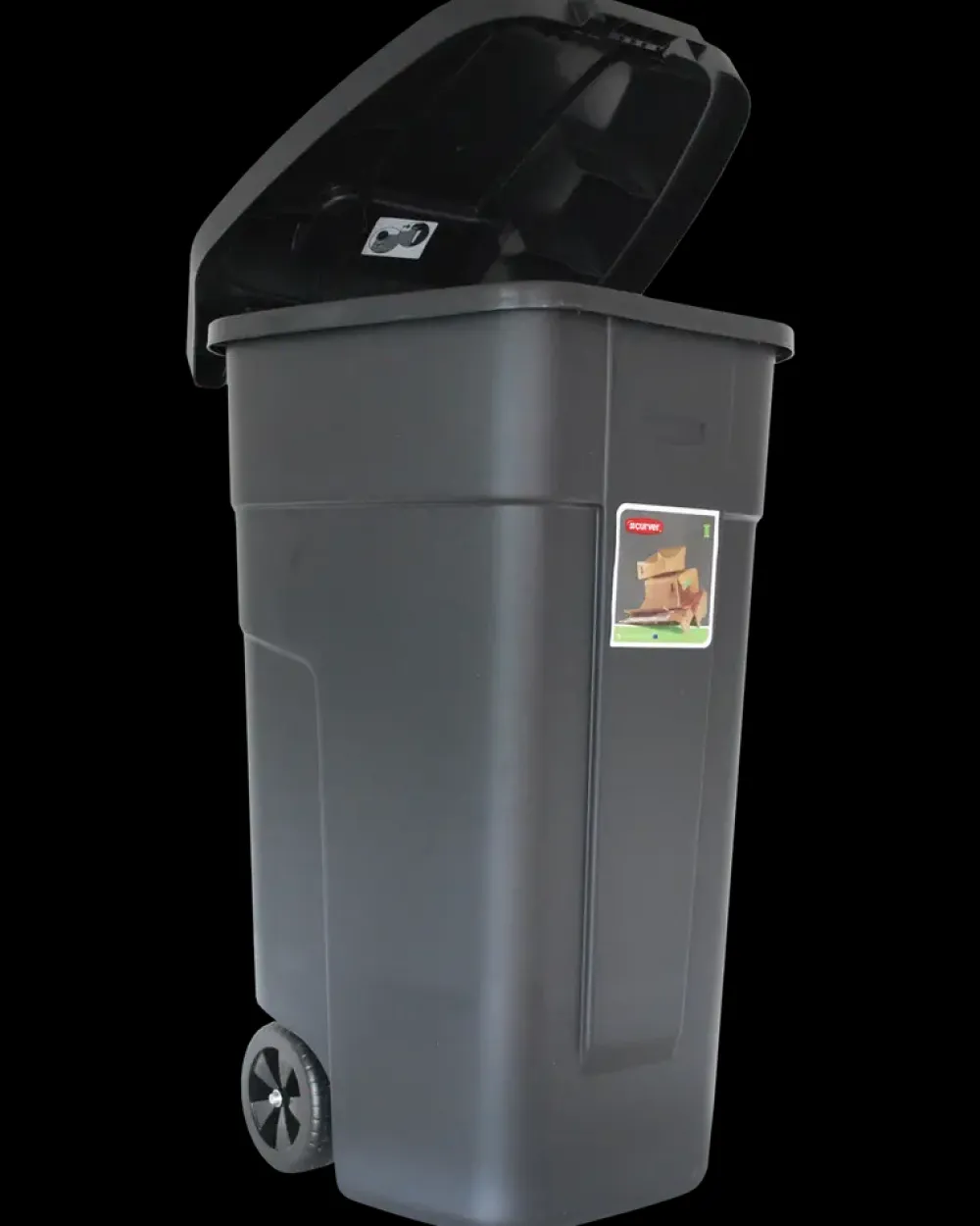 Rummelig affaldsvogn som kan bruges til større rengøringsarbejde derhjemme, i haven eller i en lille virksomhed.Affaldsvognen er udstyret med et håndtag og holdbare hjul, der gør den nem at flytte. Et bekvemt håndtag i midten af låget gør det nemt at åbne. Affaldsvognen er lavet i polypropylen og er modstandsdygtig over for skiftende vejrforhold.Affaldsvognen kan ikke bruges til renovation.