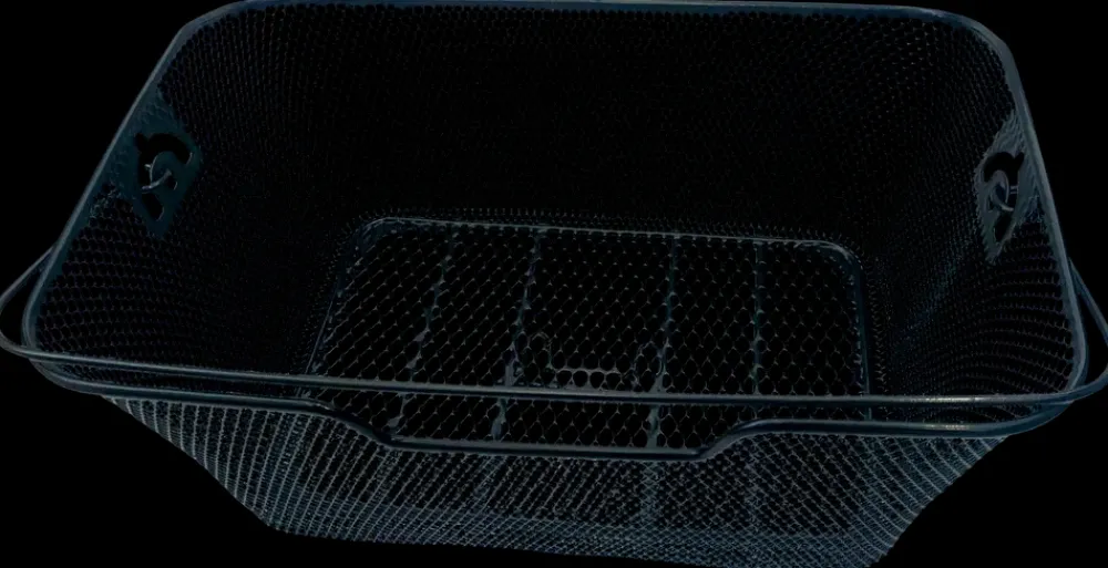 Rummelig cykelkurv til montering på bagagebæreren.Materiale: Sort lakeret trådnet af stål.