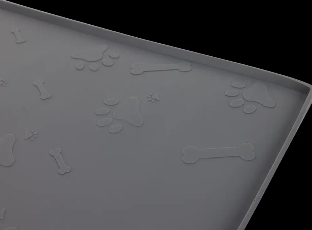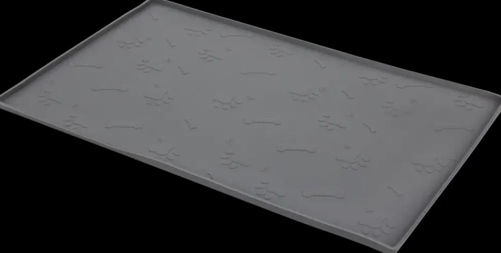 Dette foderunderlag i silikone er ideelt til at placere under dit kæledyrs mad- og vandskåle.Silikoneunderlaget hjælper med at undgå gris på gulvet samtidigt med at det skaber et stabilt og skridsikkert underlag for skålene.Underlaget har et fint pote- og kødbensdesign.