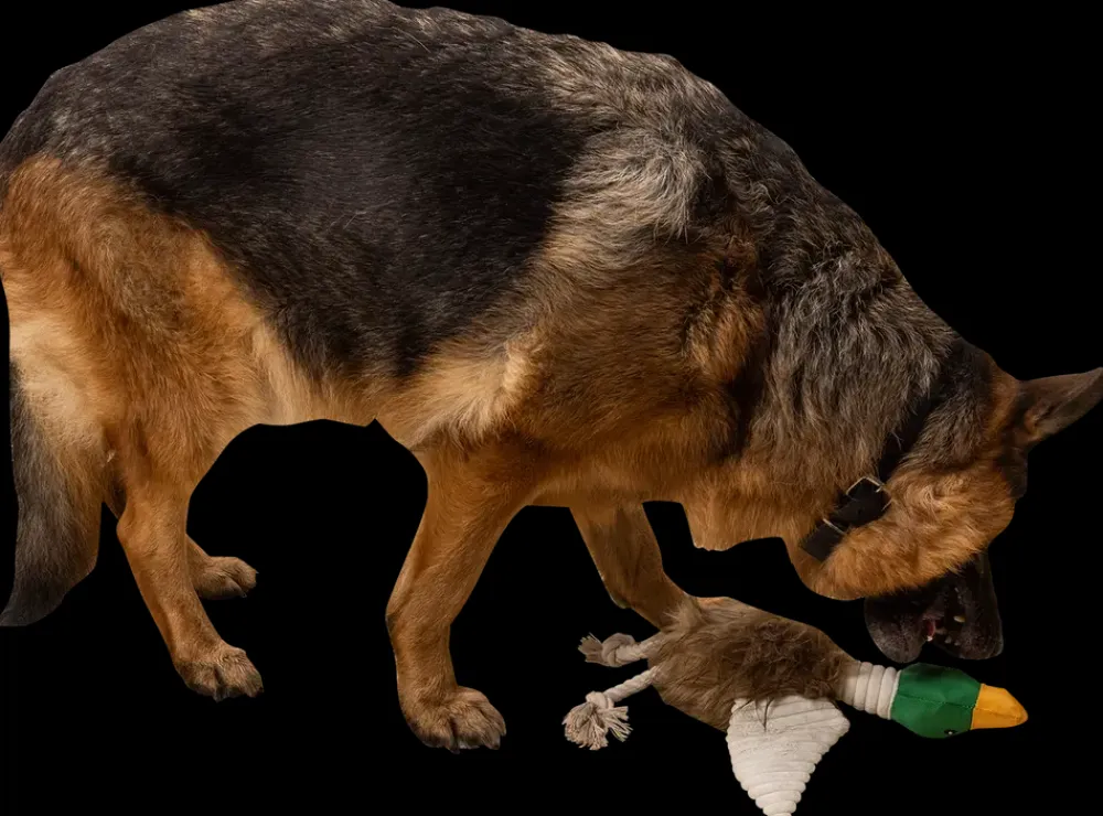 Sød bamse til hunden som ligner en and. Anden er lavet i blødt materiale, med reb som ben og med en indbygget pive- og knitrelyd for ekstra sjov.